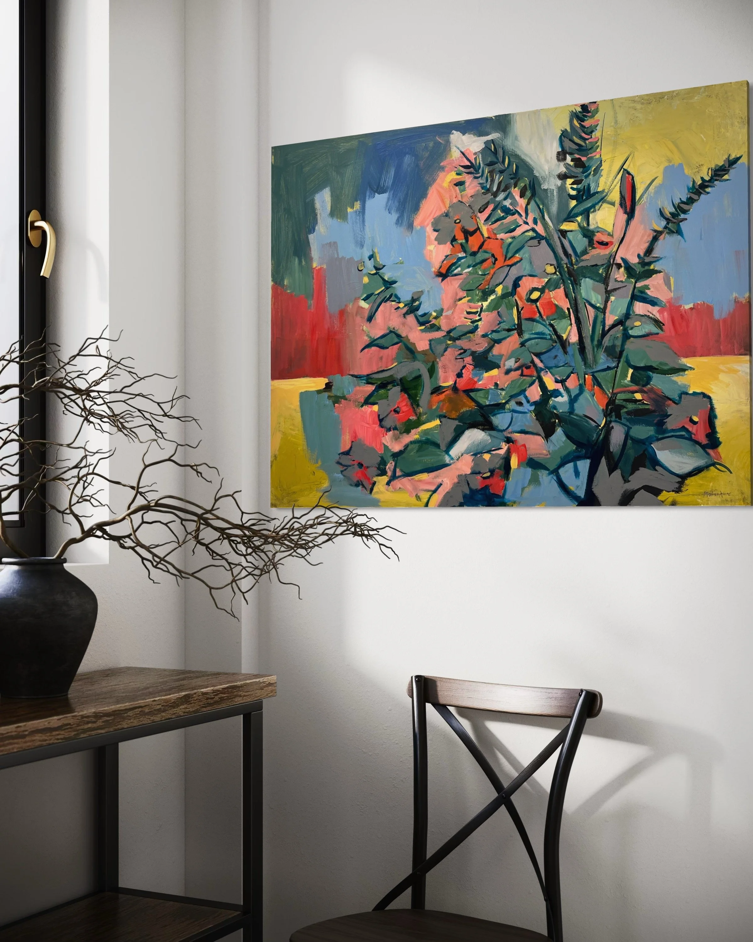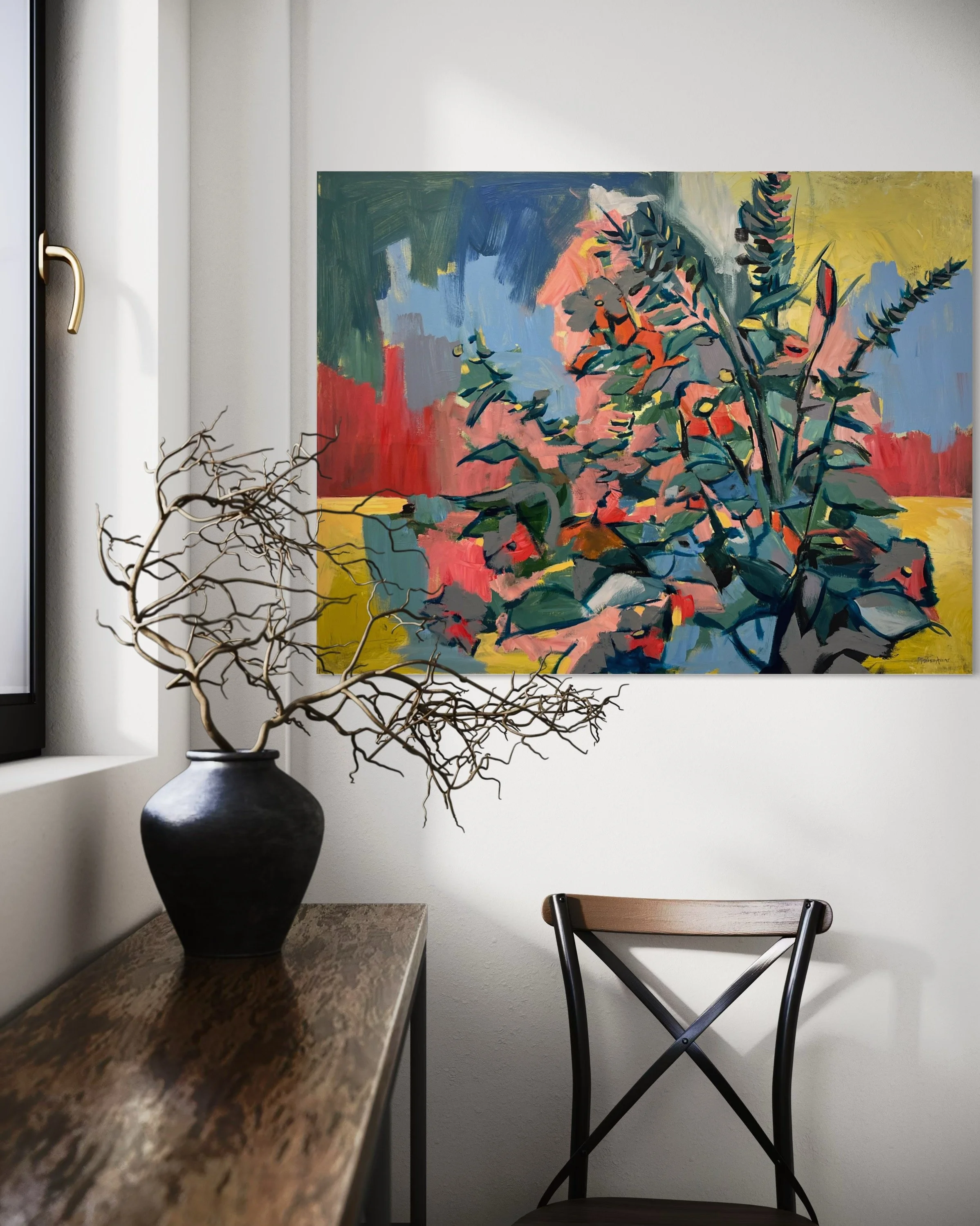 This painting was also a response to our garden & reinterpreted in the studio.